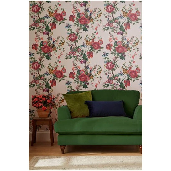 Bring the drama of the great British countryside to your home with this beautiful handpainted chinoiserie, brimming with enchanting trailing blooms. Discover hidden pheasants, charming fruits and berries intertwined with florals, all painted with exquisite detail. The antique crme background has a warming pink undertone for softness, and bright pops of colour lift the design for a fresh take on a classic piece. Perfect paired with bright furnishings, it’s sure to get heads turning. This beautiful design has a large repeat for impactful scale and is printed on a matt substrate for a contemporary look and feel. This wallpaper is also pastethewall, making it easy to hang.