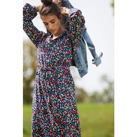 Dressing for any occasion is a breeze with Joules’ Zoey shirt dress in your wardrobe. It has a pretty ruffled collar to the neck, with a gathered tie waist and puff sleeves for a beautifully feminine silhouette. The dress is crafted from lovely and lightweight Lenzing™ EcoVero™ viscose, which uses renewable wood pulp from responsibly managed forests.