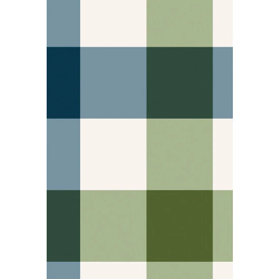 A fresh twist on a timeless classic gingham print, this wallpaper features an oversized gingham check, reminiscent of family picnics on sunkissed meadows and sandy beaches. Combining a sophisticated colour palette of fresh garden greens and blues on a subtly offwhite background, this minimal yet statement design will add colour and pattern to any wall in the home. Printed on a matt substrate for a contemporary look and feel. This wallpaper is also pastethewall, making it easy to hang.
