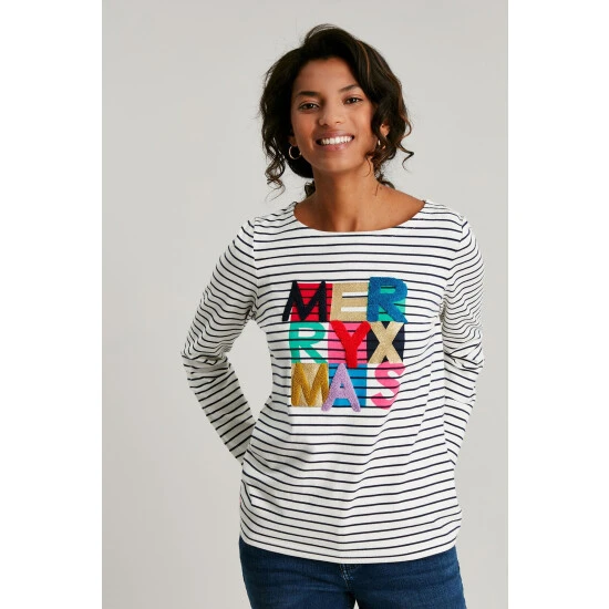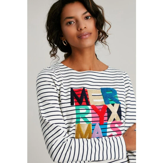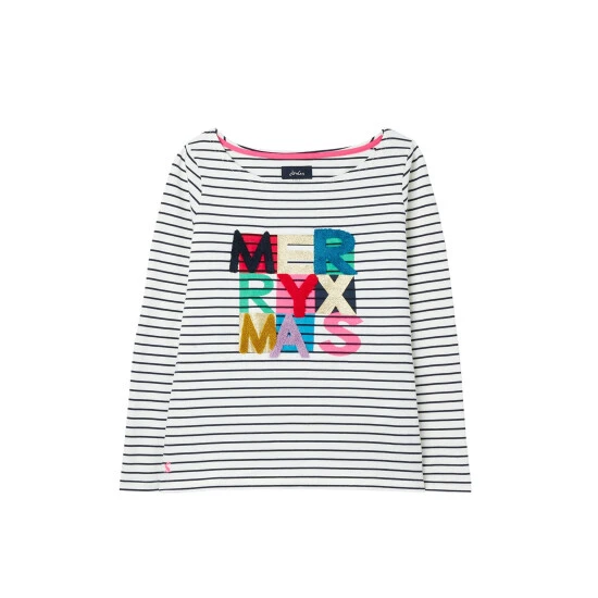 Joules Harbour Luxe White Long Sleeve Christmas Jersey Top