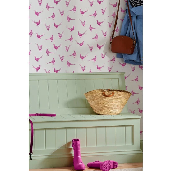 Make a statement and add colour and country charm to your home with this flirty pheasant wallpaper design. It’s the perfect way to add a pop of colour to your humble abode, with the bright pink pheasants which sit perfectly upon a neutral background, whether that be in a boot room or adding a talking point to one wall of your kitchen. Printed on a matt substrate for a contemporary look and feel. This wallpaper is also paste-the-wall, making it easy to hang.